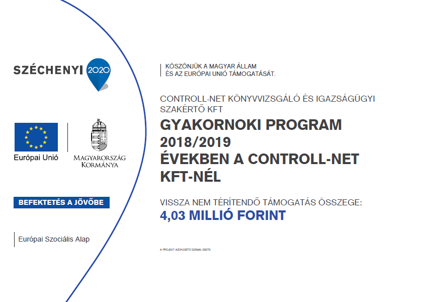 Ezen a napon társaságunk neve megváltozott, az alábbiak szerint: Controll-Net Könyvvizsgáló és Igazságügyi Szakértő kft. Székhely: 5600 Békéscsaba, Justh Gyula utca 4. fsz. 1. Telephely: 4025 Debrecen, Arany János utca 18. tt. 11. Cégjegyzék száma: 04 09 013854 Adószám: 11963138-2-04 Könyvvizsgálói tanúsítványszám: 002224 A munkatársak és számos ügyfél hosszú években mérhető hűsége igazolja vissza a Controll-Net fáradhatatlan szakmai és tárgyi fejlődésének elsődlegességét és értelmét. Valljuk, az elégedett ügyfél a mi legszebb sikerünk! Boldogan jelenthetjük, a megbízhatóság és igényesség elégedett ügyfeleket hozott nekünk és tart velünk.